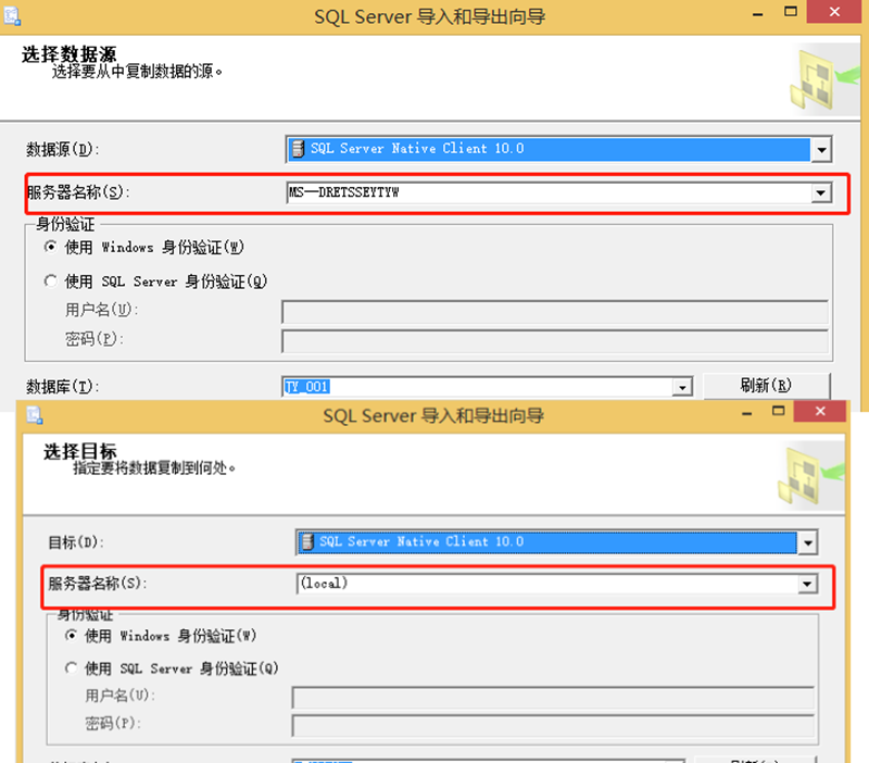 1、服務器名稱不一樣。(注:單臺電腦數據庫導入導出)