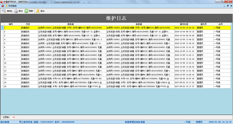 (3)、過磅日志,記錄車輛上磅未保存過磅數據信息