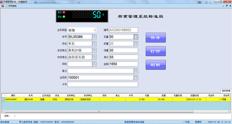 標準版稱重系統可單機運行,只需要安裝一套稱重軟件即可實現稱重管理。