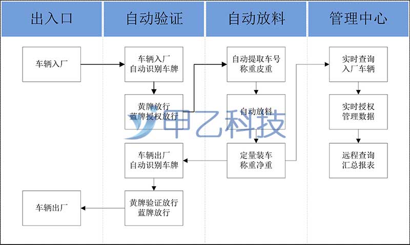 鄭州甲乙科技智能物流系統結合車牌識別一體機、LED顯示大屏、智能道閘、雷達防砸系統等系列硬件,實現自動識別車牌號,自動區分黃藍牌,黃牌自動放行入廠,藍牌授權車輛自動放行。