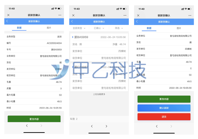 車輛駛入車號識別區域,系統自動核驗車輛信息及登記信息,打開道閘,車輛上磅,自動完成第一次過磅;車輛到達料庫后,現場工作人員根據車號完成車輛裝卸貨信息的在線確認,可微信在線扣水扣雜、退貨等操作,系統自動記錄裝卸貨確認信息及人員,自動同步至稱重系統。只有經過工作人員在線確認的車輛,才能進行第二次過磅。